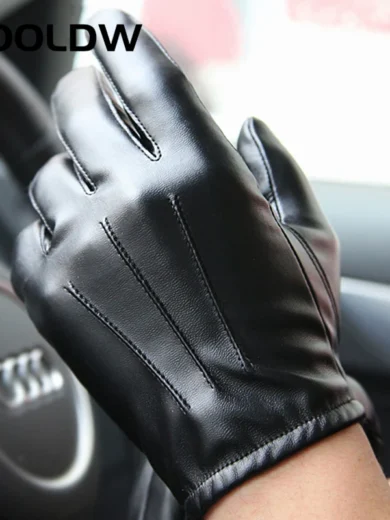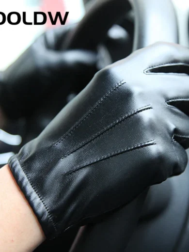 HOOLDW New Winter Gloves Men Women Black PU Leather Cashmere Warm Driving Gloves Mittens Touch Screen Waterproof Tactical Gloves