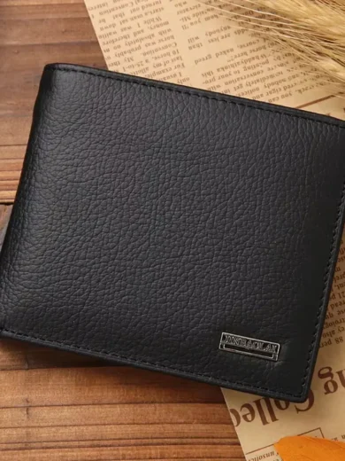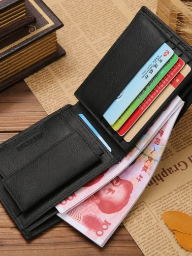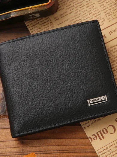 Genuine Leather Mens Wallet Premium Product Real Cowhide Wallets For Man Short Black Walet Portefeuille Homme Short Purses