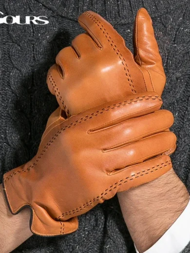 Gours Winter Men's Genuine Leather Gloves New Brand Touch Screen Gloves Fashion Warm Black Gloves Goatskin Mittens GSM012