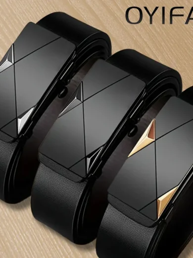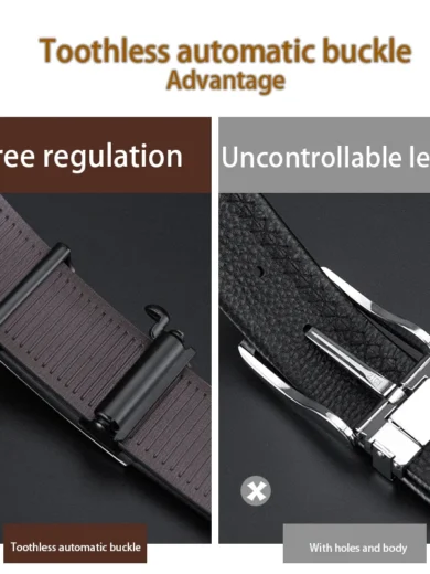 OYIFAN Fashion Men's Belt Men's Genuine Leather Belt Automatic Buckle Ratchet Belt Random Adjustment